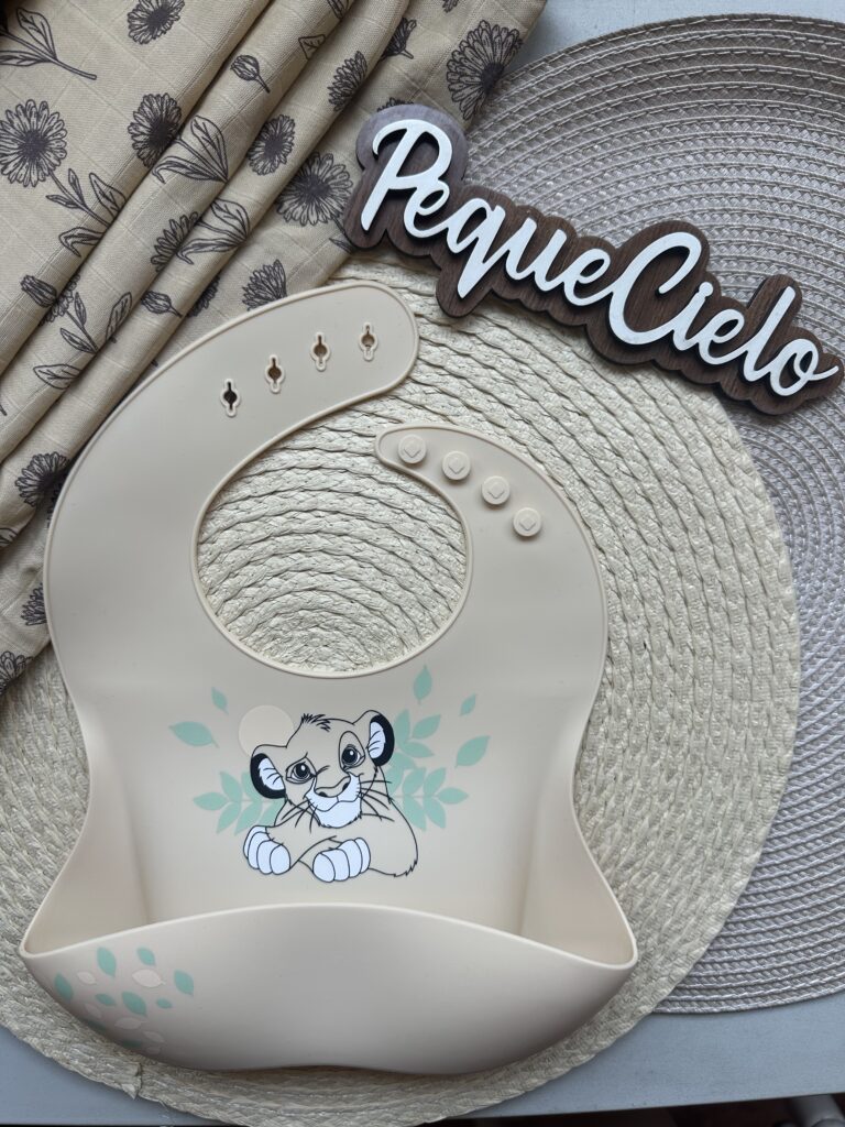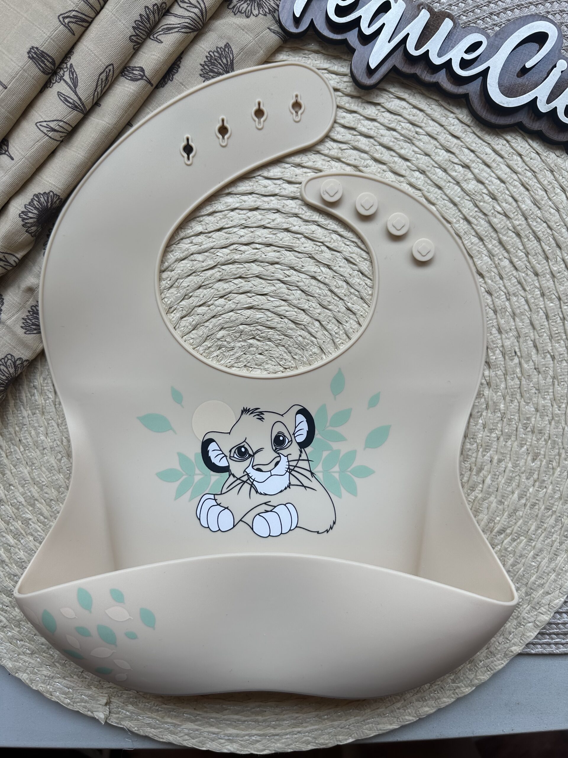 Con el pequeño Simba como protagonista, este babero es perfecto para los fans de El Rey León.