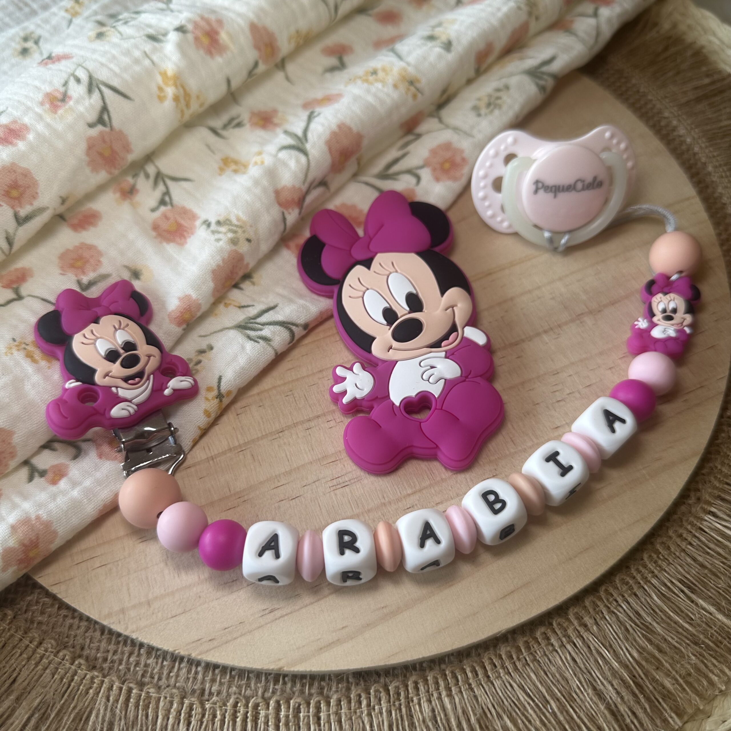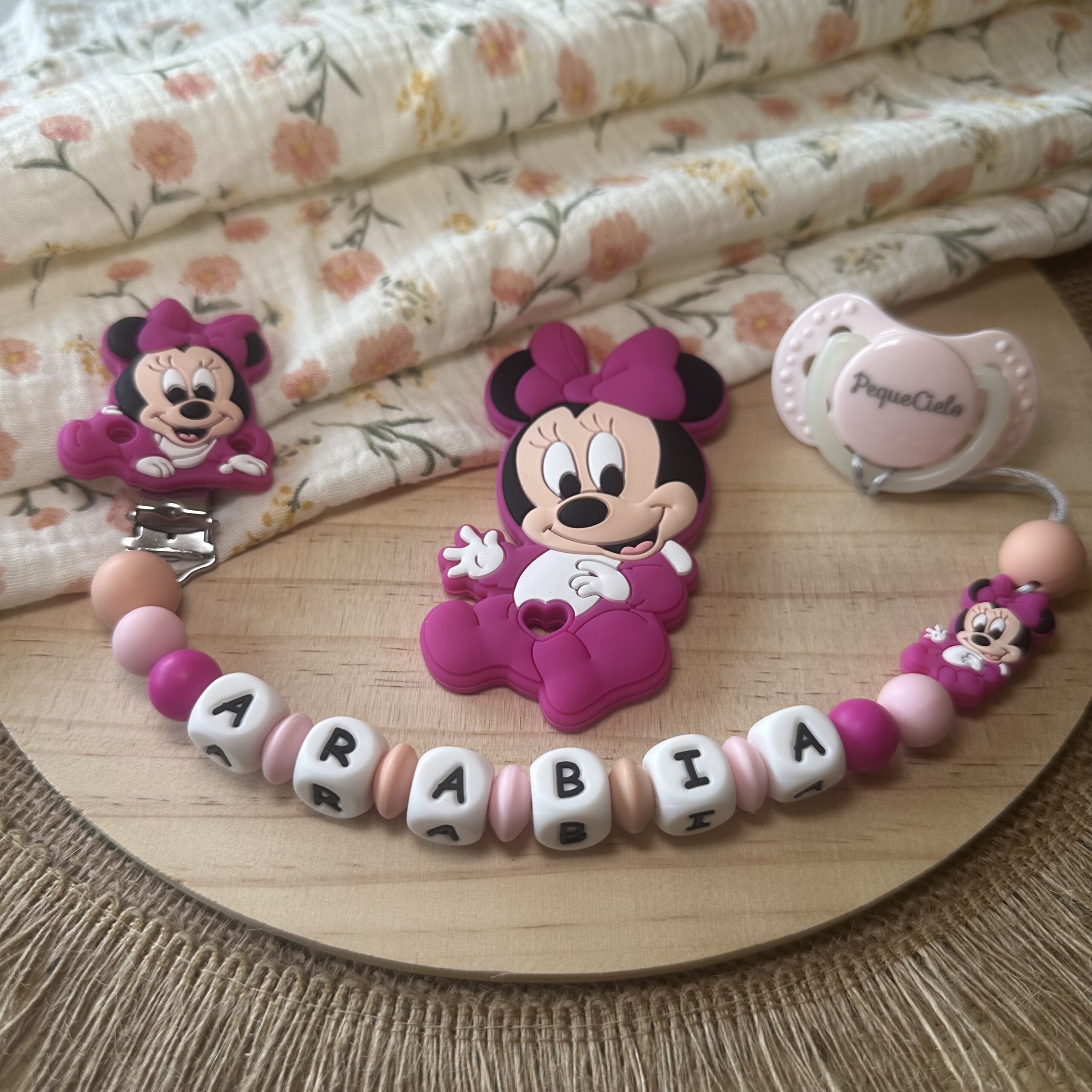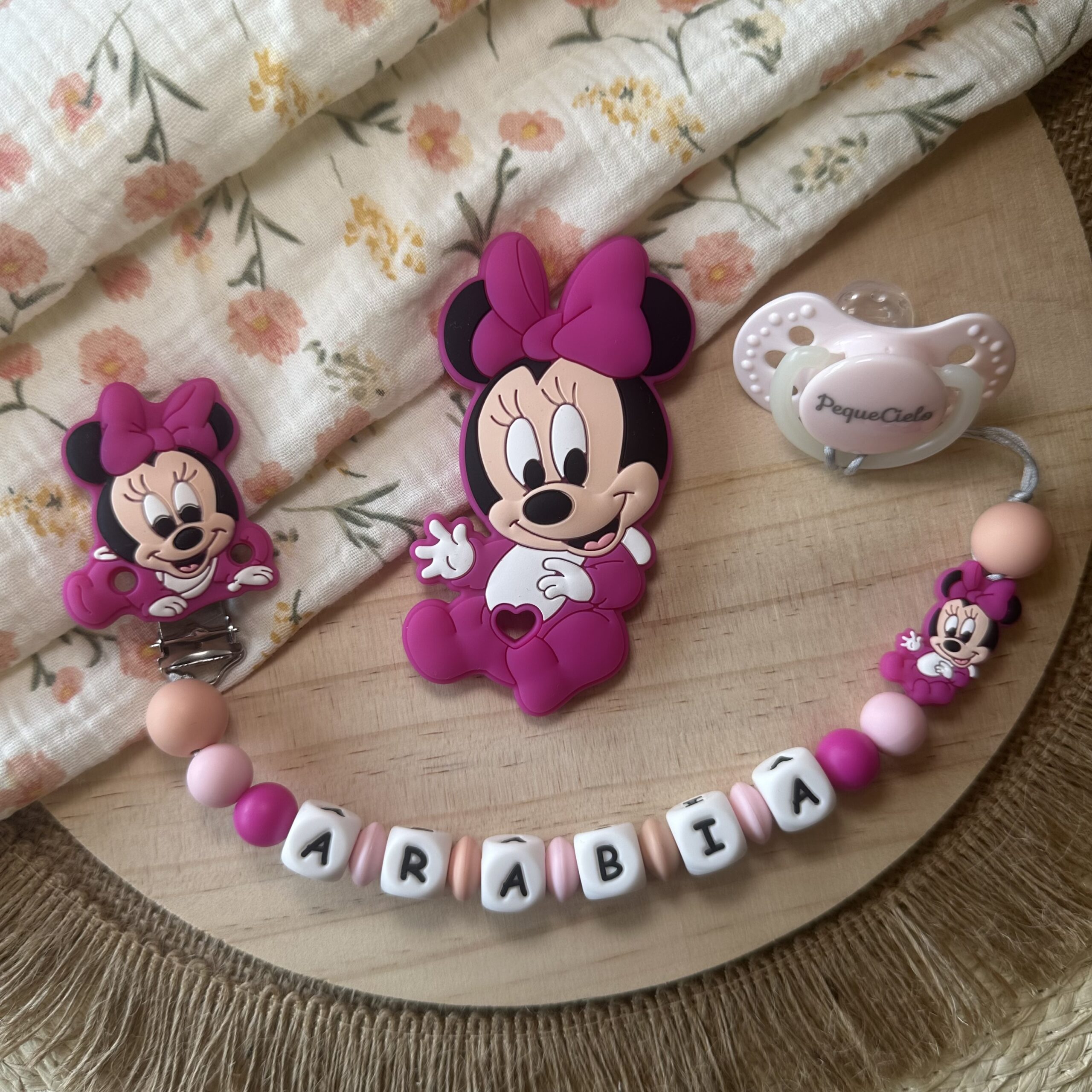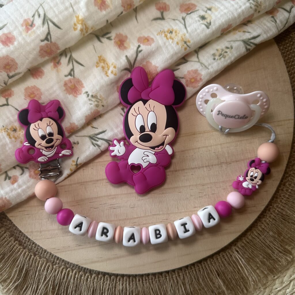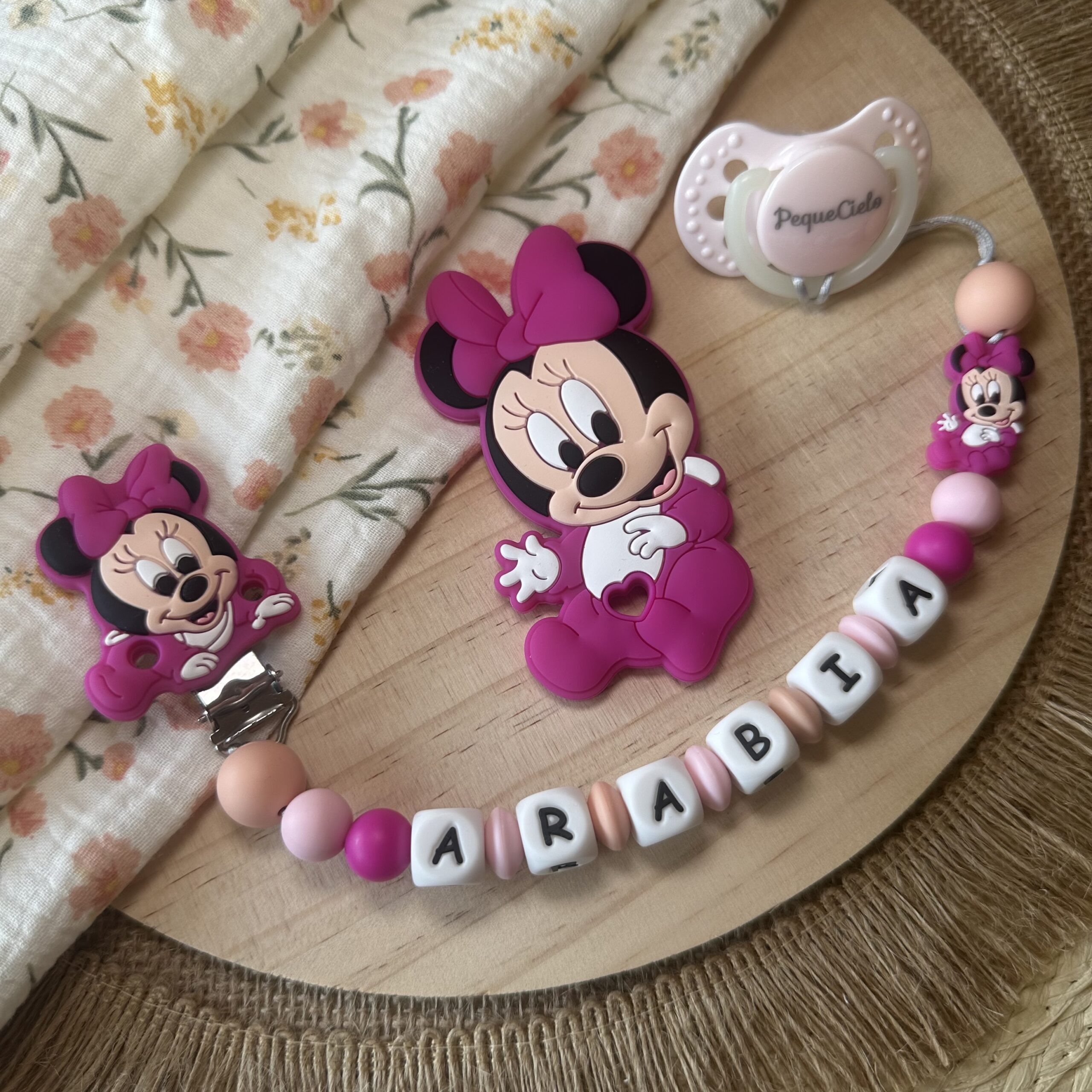 👶 Cada bebé merece un detalle único y lleno de amor. Haz que cada detalle cuente regalando este chupetero personalizado con el nombre del peque y el adorable diseño de Minnie a esa Mai tan ilusionado con la llegada de su peque. Hecho a mano con cuentas de silicona de grado alimenticio. Será un accesorio tierno y también 100% seguro.