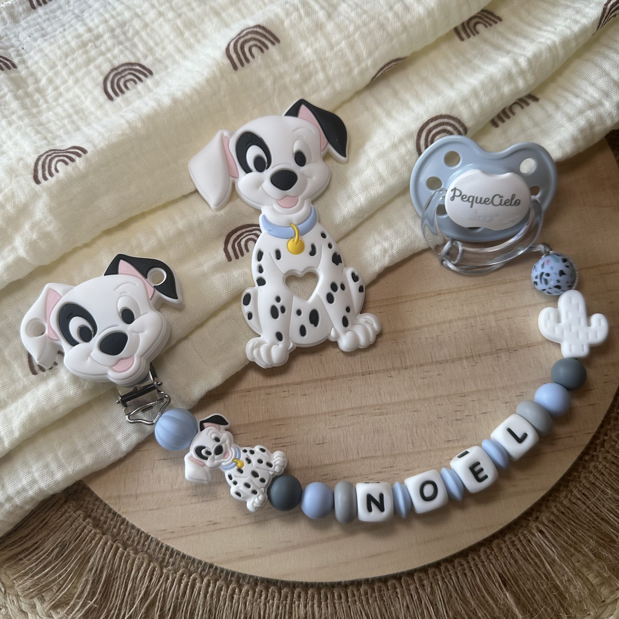 👶 Cada bebé merece un detalle único y lleno de amor. Haz que cada detalle cuente con este chupetero personalizado con el nombre del peque y el adorable diseño de Pongo de la película “101 Dálmatas”. Fabricado con cuentas de silicona de grado alimenticio, a parte de ser un accesorio tierno también es 100% seguro.