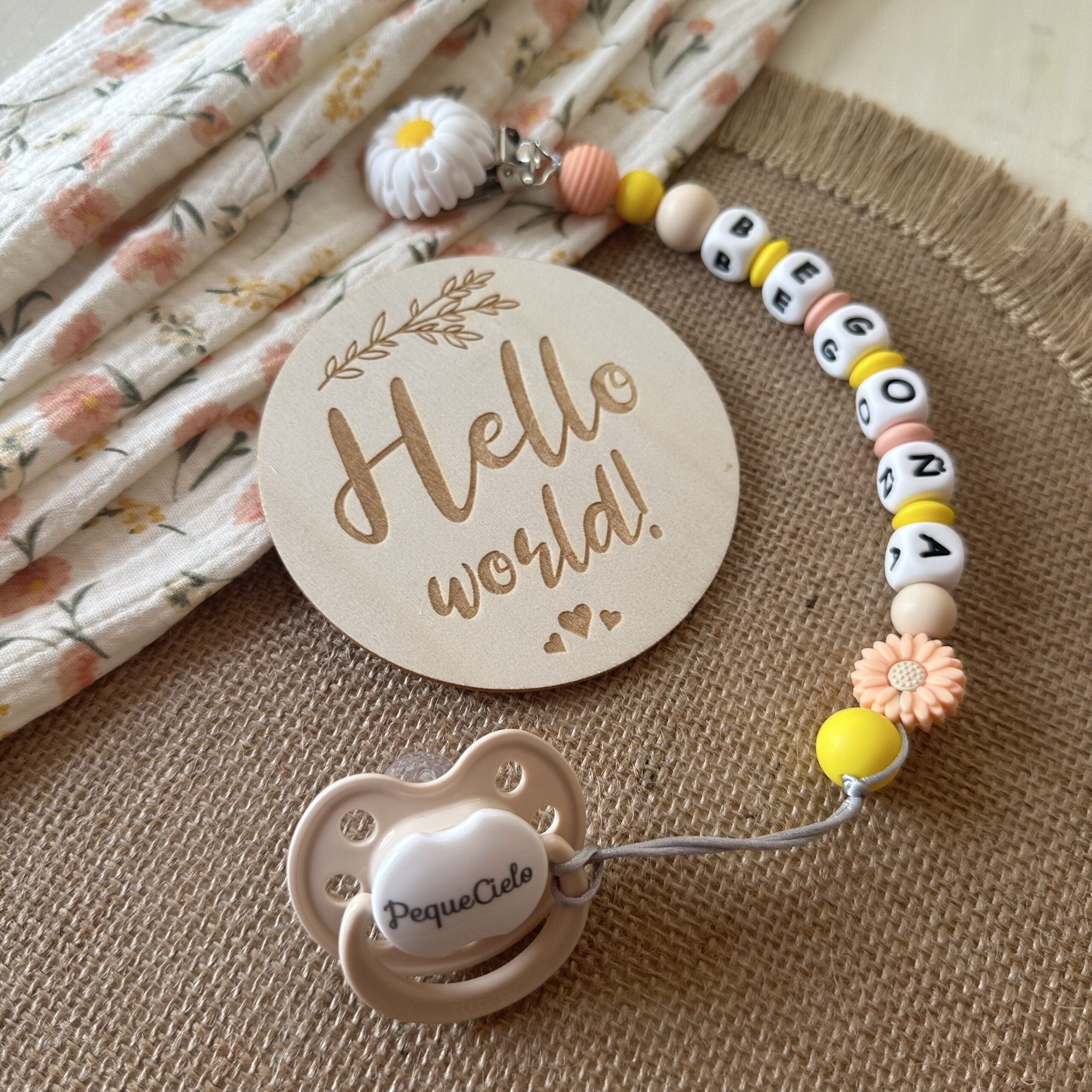 👶 Cada bebé merece un detalle único y lleno de amor. Haz que cada detalle cuente con este chupetero personalizado con este diseño tan colorido. Perfecto para temporadas de primavera-verano.