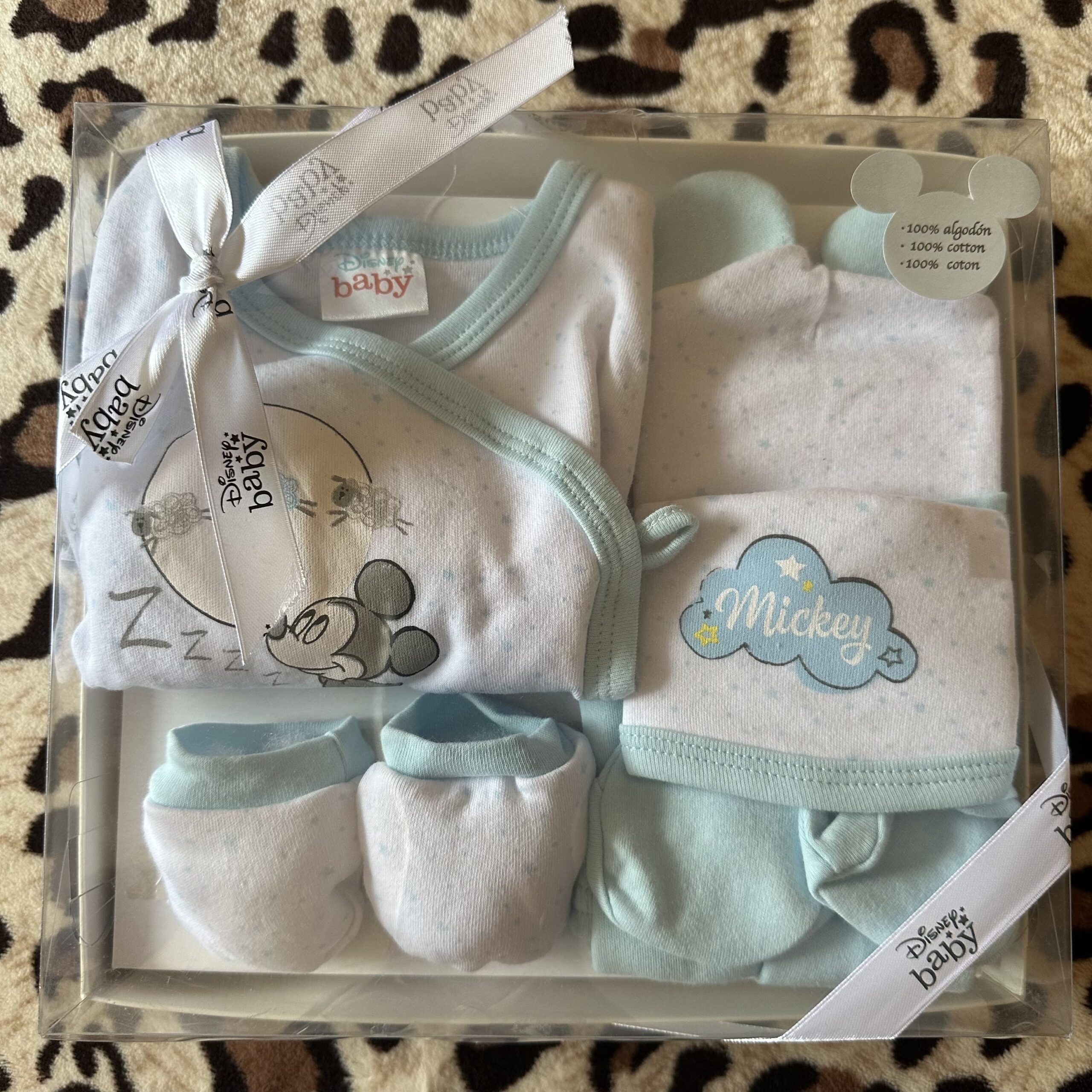 Conjunto 100% algodón con diseño de Mickey en color celeste.