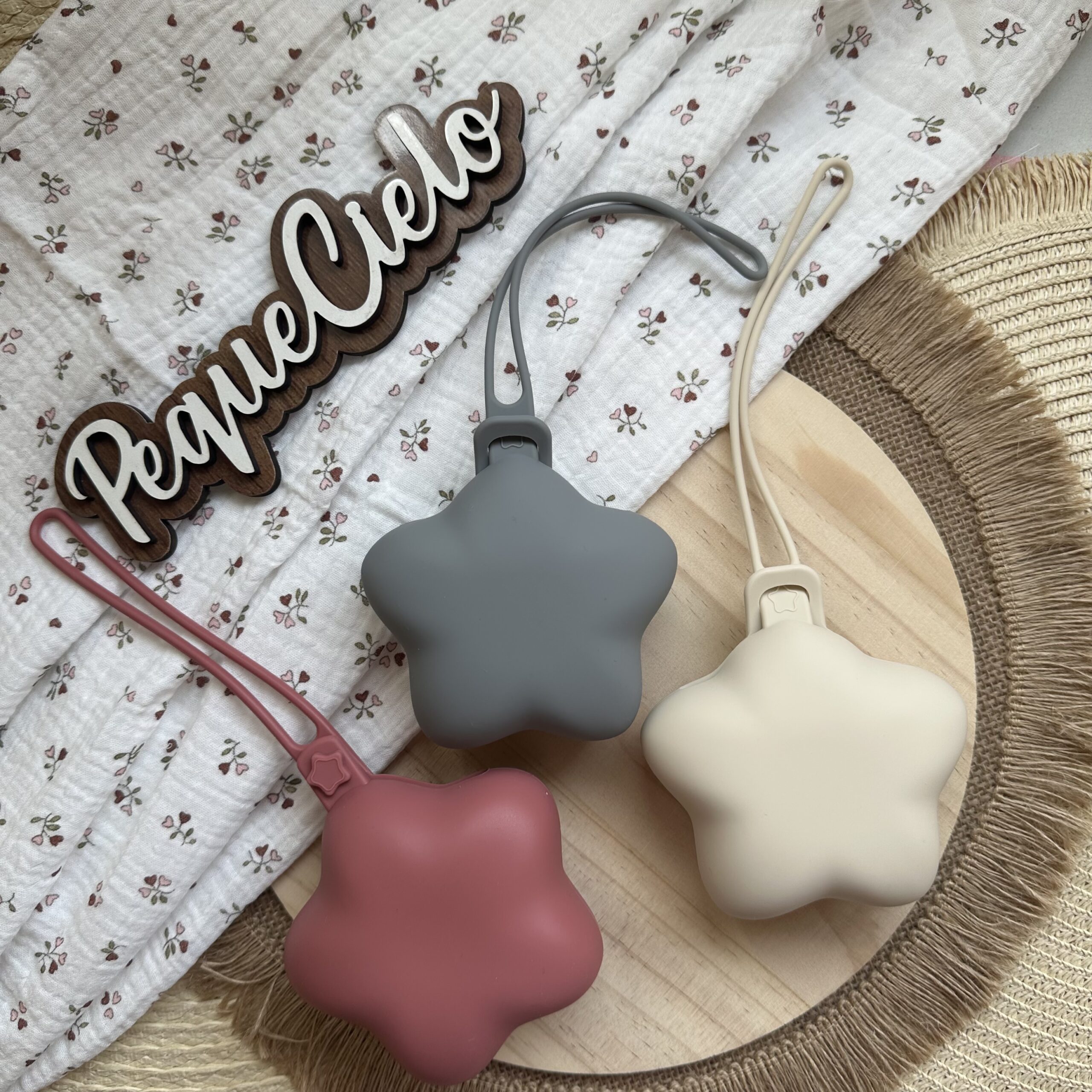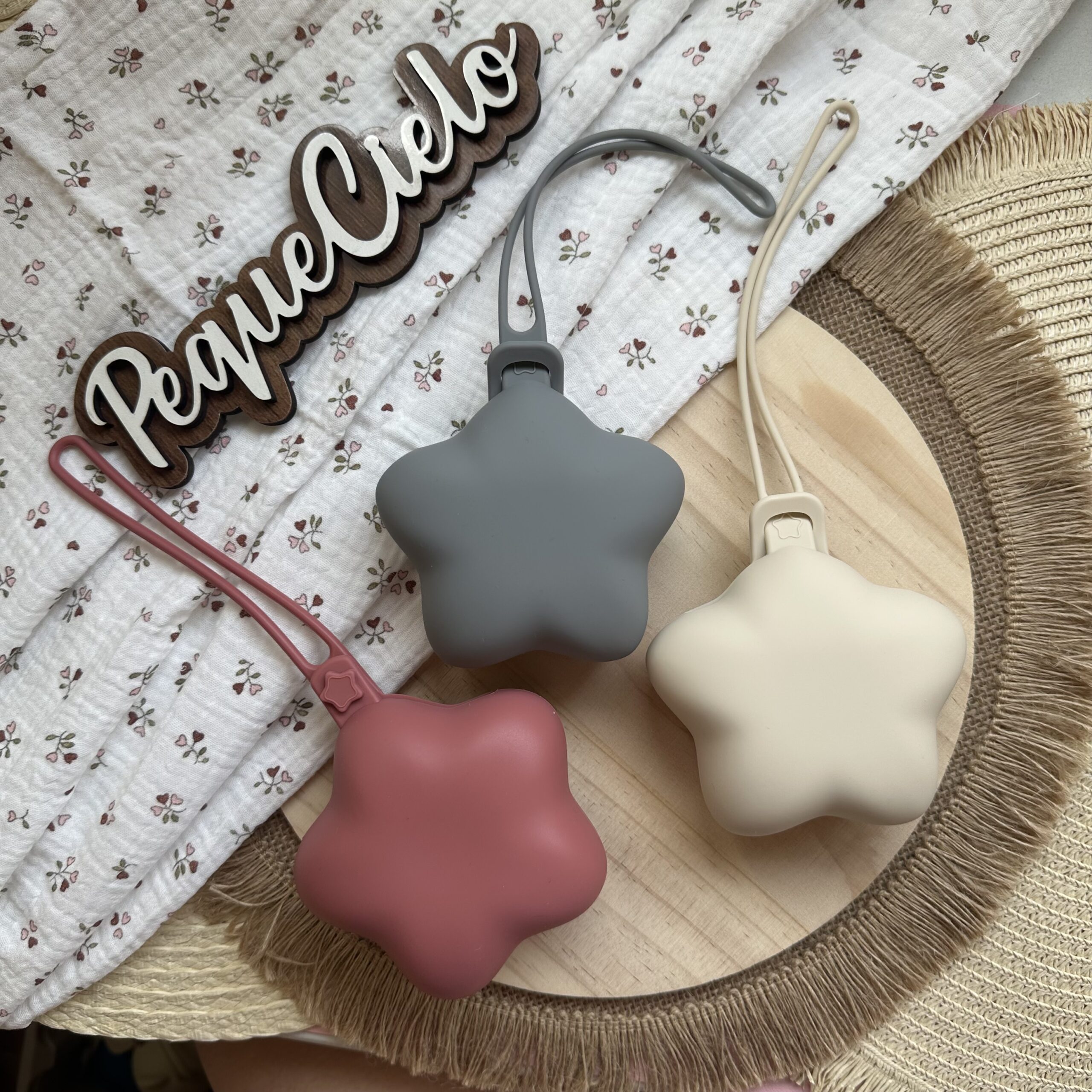 Nuestro guarda chupete de silicona en forma de estrella es el complemento ideal para llevar el chupete de forma limpia, segura y con mucho estilo.