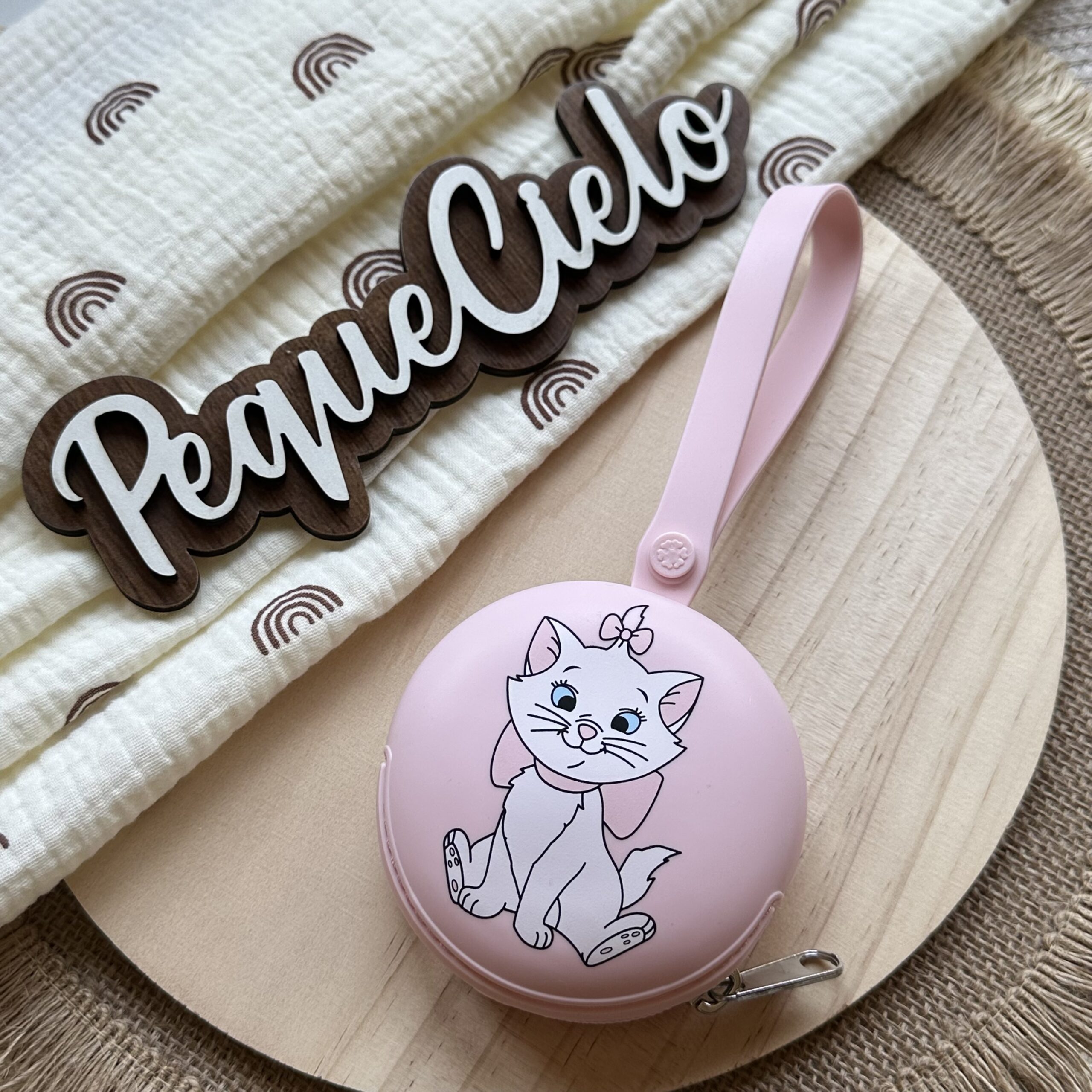 Este tierno guarda chupete de silicona con cremallera y cuerda de Marie será objeto de todas las miradas.