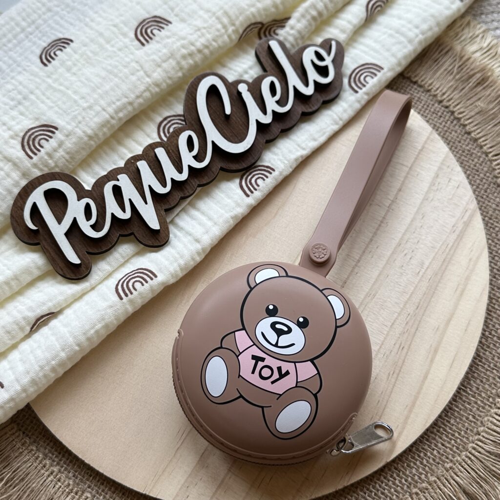 El guardachupete de osito Moschino es ideal para peques con estilo y mamás que aman lo diferente.