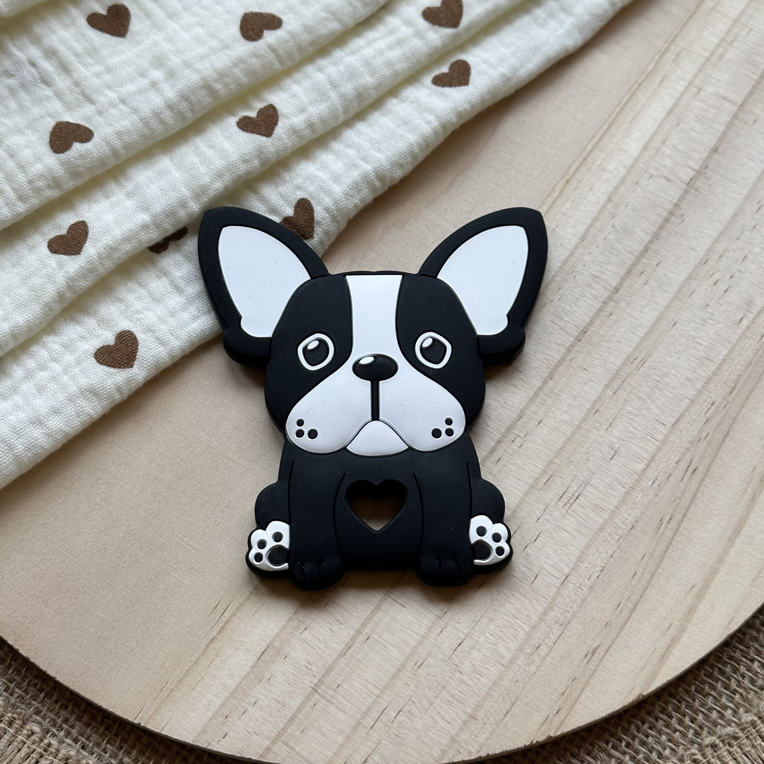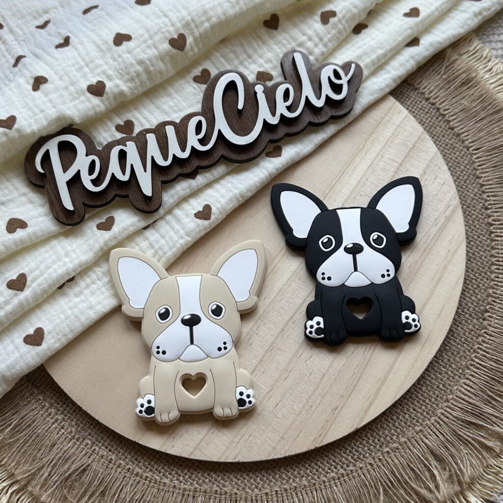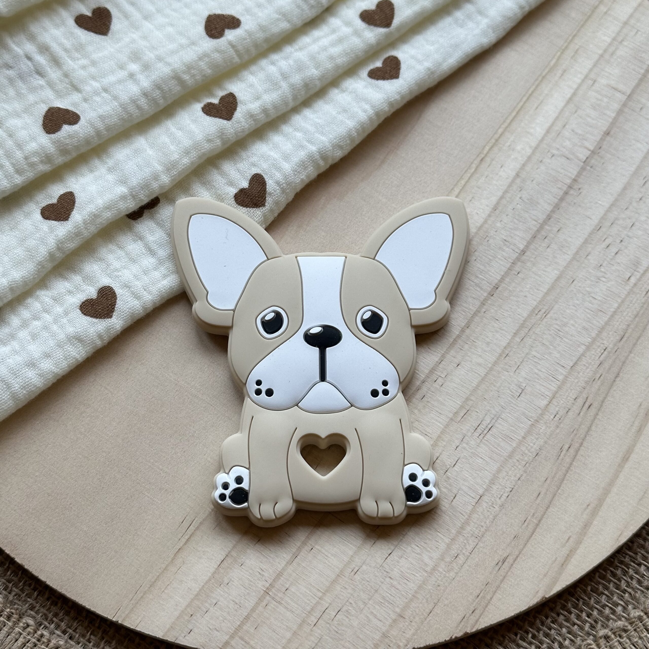 Este mordedor en forma de bulldog es ideal para los peques con carácter. Fabricado en silicona alimentaria, combina firmeza y suavidad para calmar sus encías con estilo.