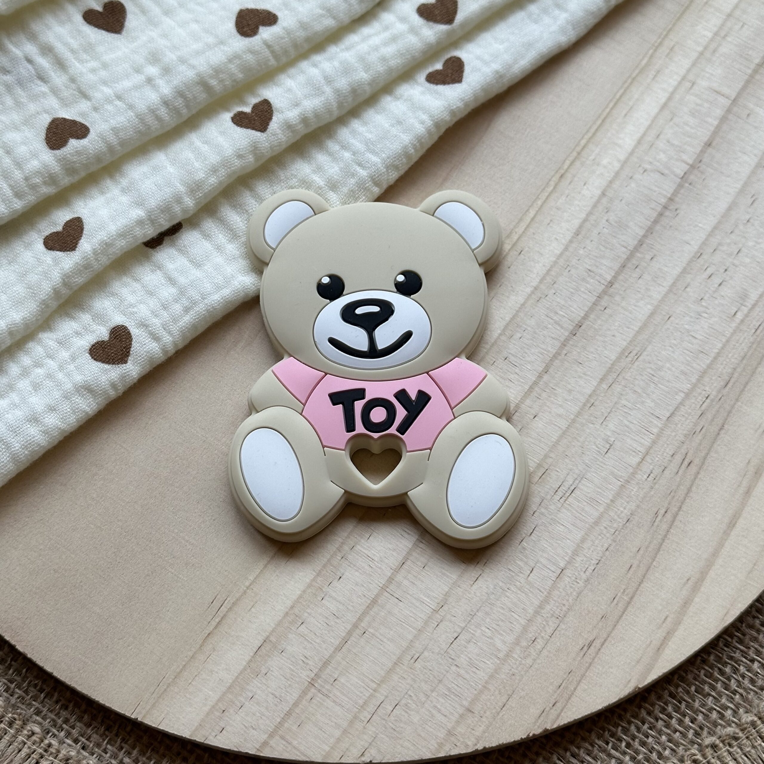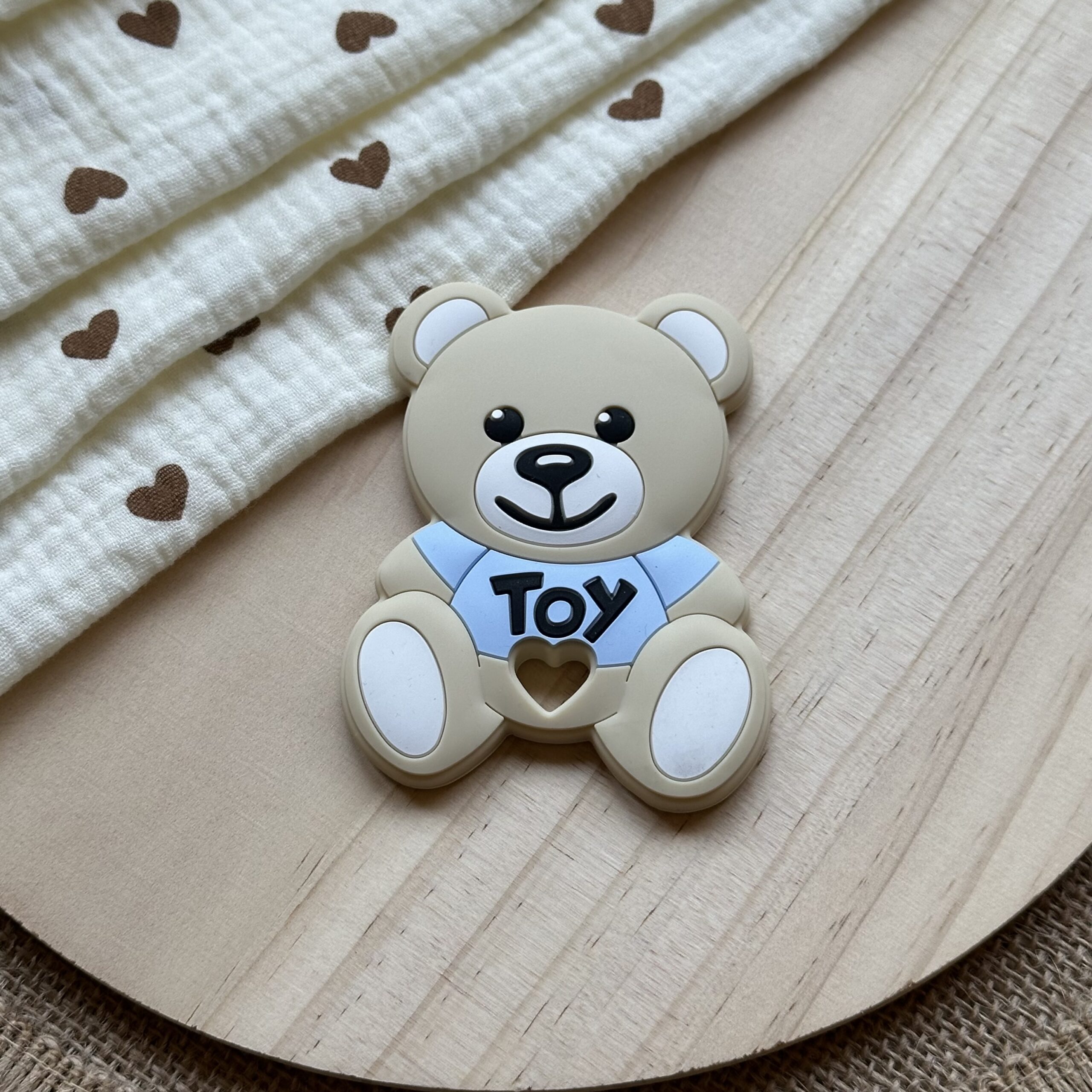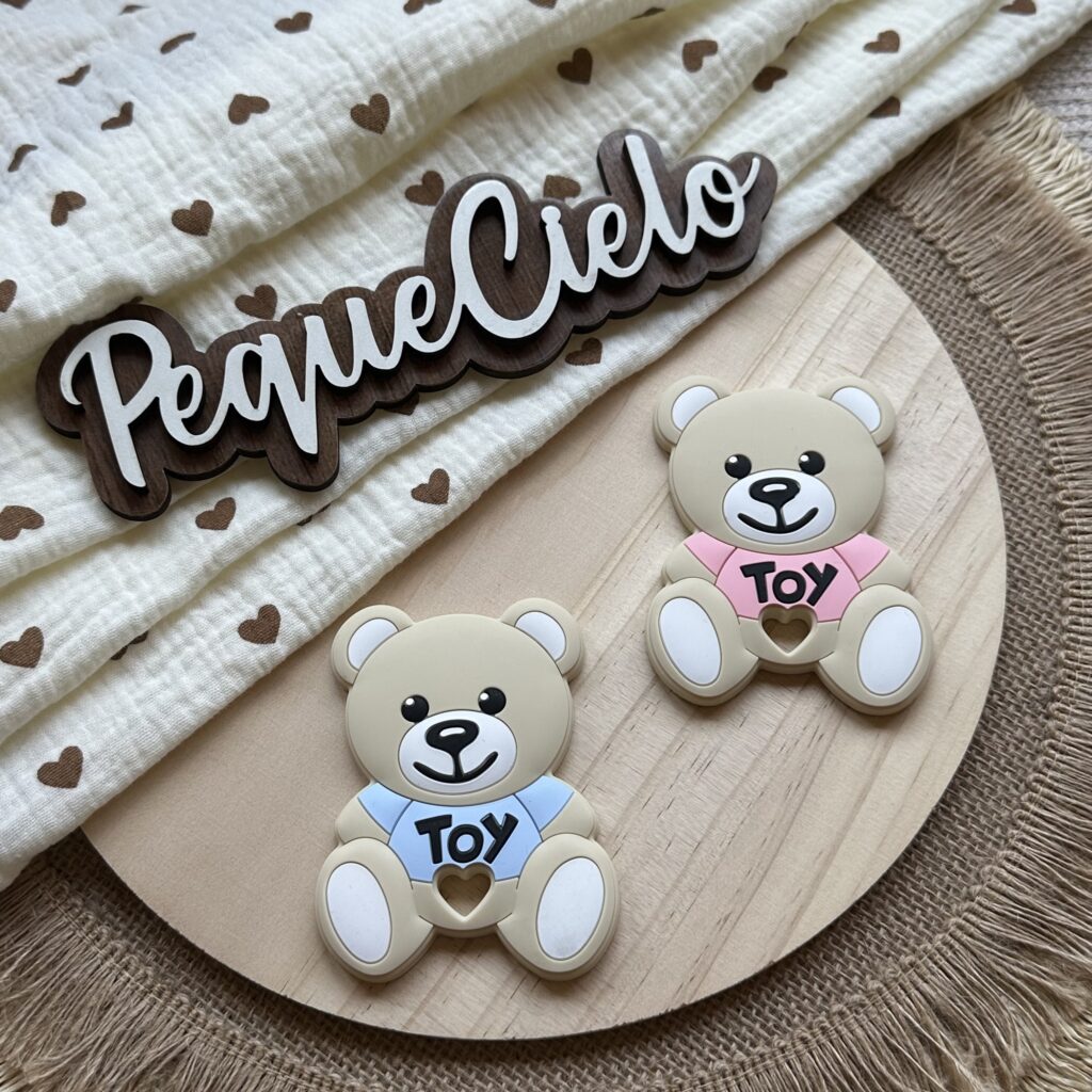 Este mordedor con aire Moschino une elegancia y funcionalidad. Con forma de osito y detalles modernos, es perfecto para bebés con mucha personalidad (y mamás con mucho estilo).