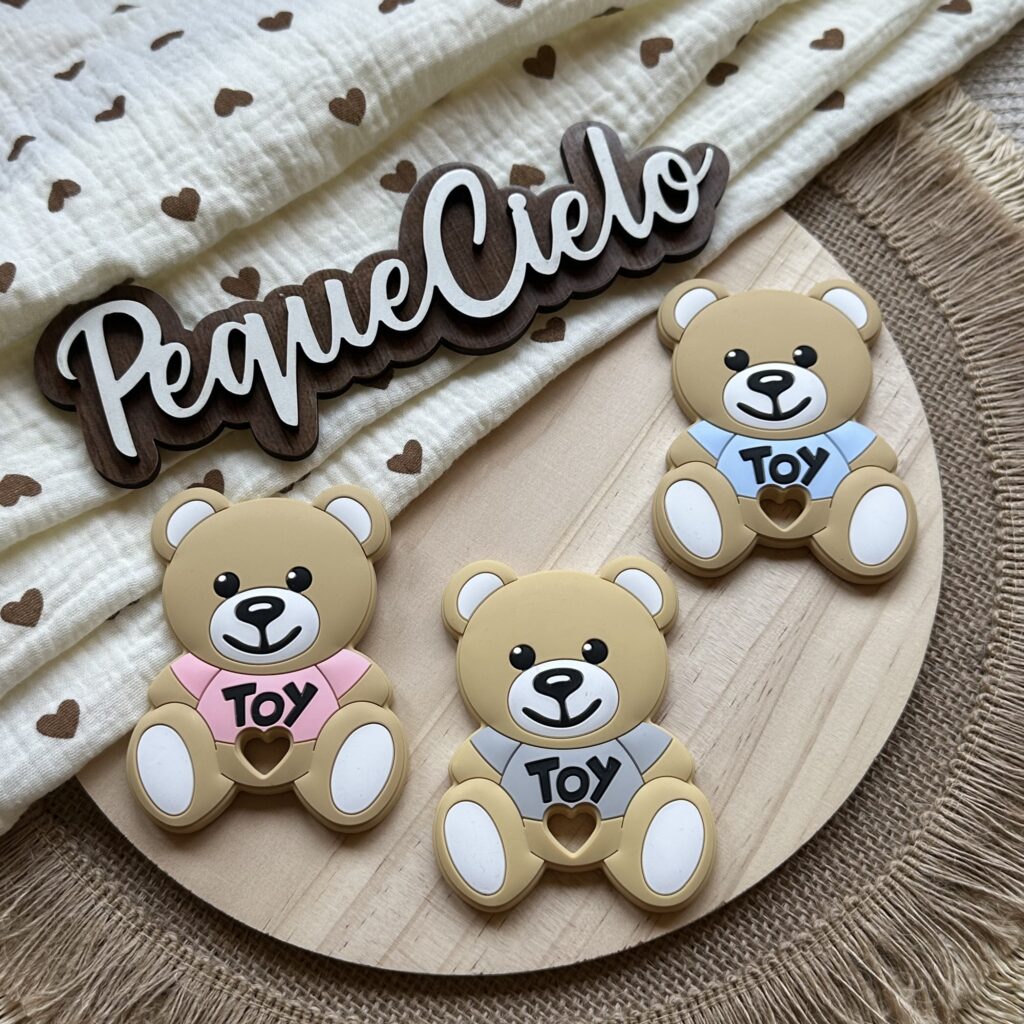 Este mordedor con aire Moschino une elegancia y funcionalidad. Con forma de osito y detalles modernos, es perfecto para bebés con mucha personalidad (y mamás con mucho estilo).