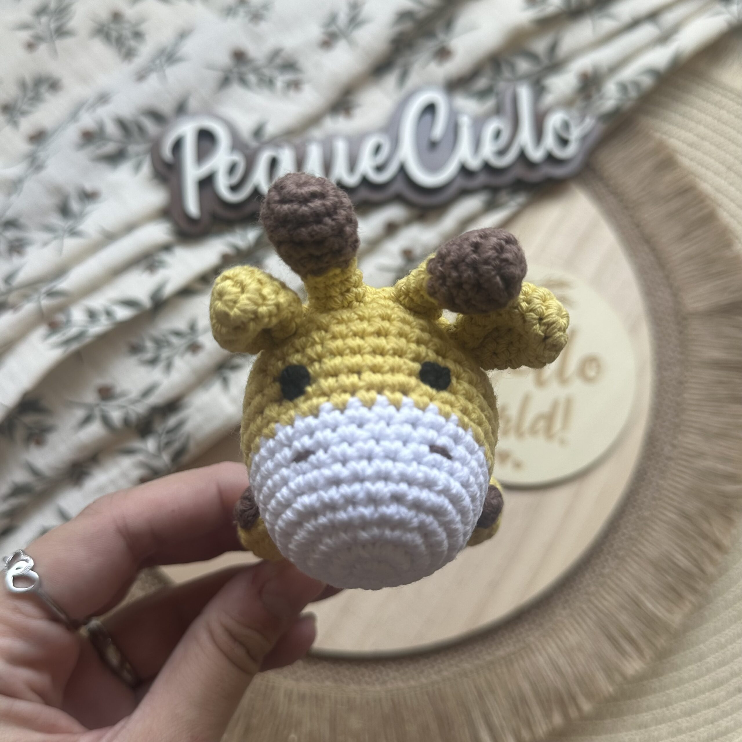 Este sonajero de ganchillo de esta tierna “Jirafa” será el compañero perfecto para los primeros descubrimientos de tu bebé.