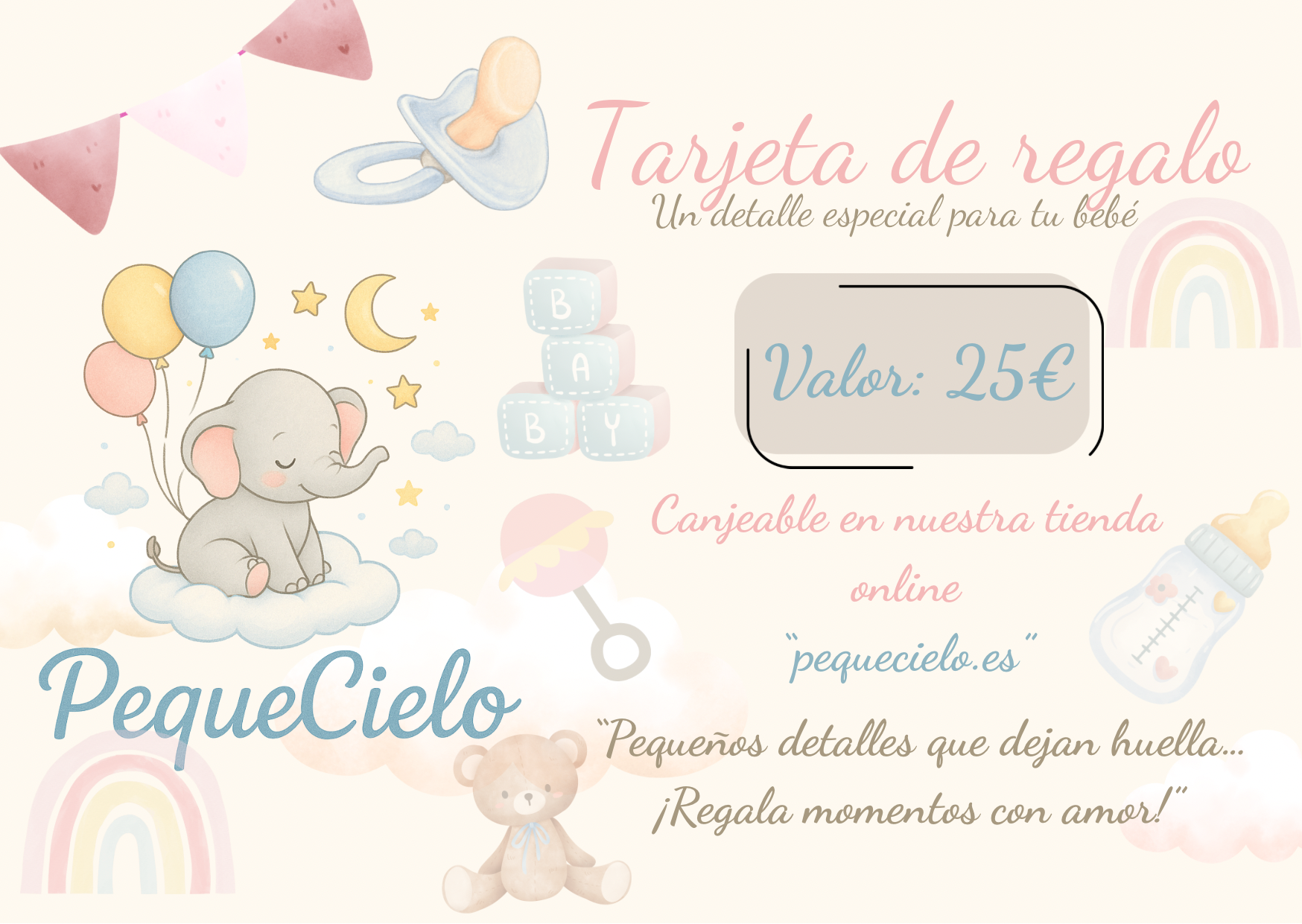 ¿No sabes que elegir? Con nuestra tarjeta de regalo PequeCielo, tú pones el cariño y ellos eligen su producto favorito.
